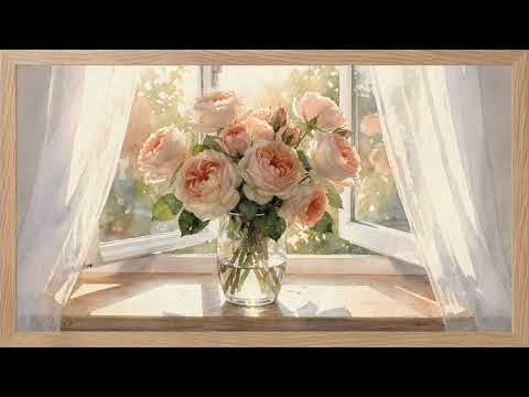 Vintage Watercolor Roses by the Window 🌿 Soft Romantic Art Wood Frame | 4K Frame TV 2 Hours