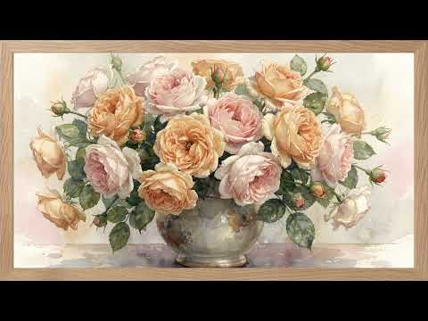 Romantic Rose Watercolor Wood Frame🌸 David Austin Roses in Vase | 4K Frame TV Art 2 Hours